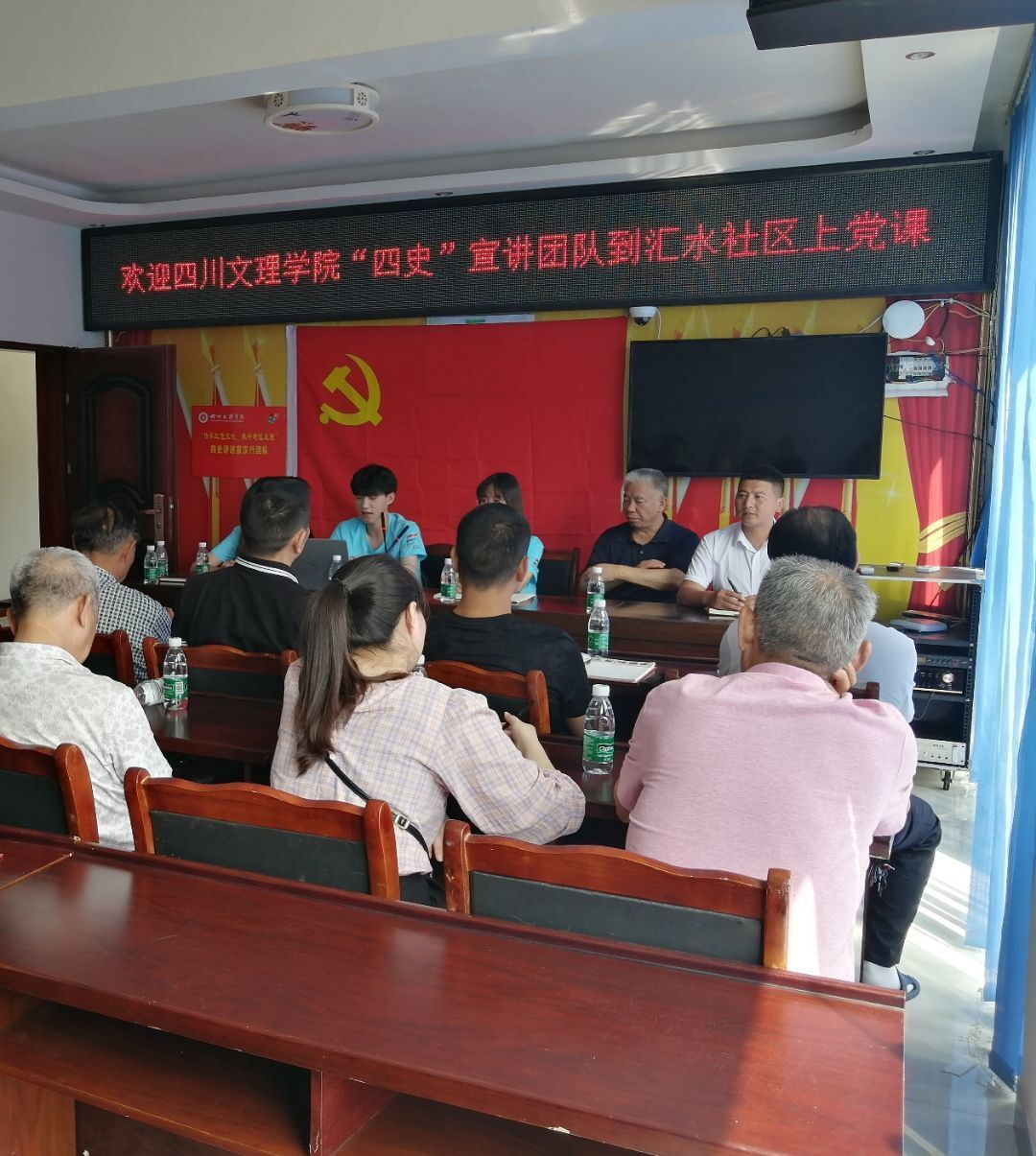 成良臣、余张飞带领团队成员张自力、王润峰、周敬丽前往清溪镇汇水社区结合习近平总书记“七一”重要讲话精神作《中国共产党与人民》《中国共产党为什么能》的党史宣讲,汇水社区党员干部和党员同志参加宣讲会。