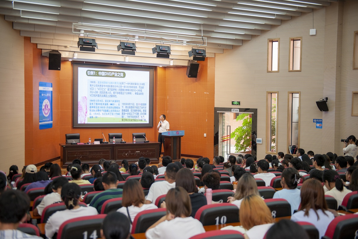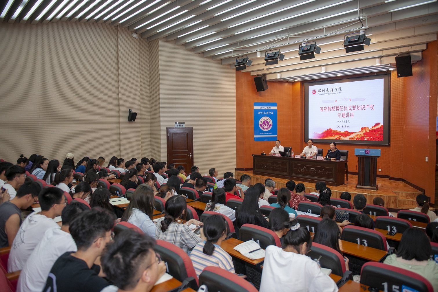 达州市科技局、知识产权局等部门负责人,知识产权公司师生200余人参加客座教授聘任仪式并聆听讲座。