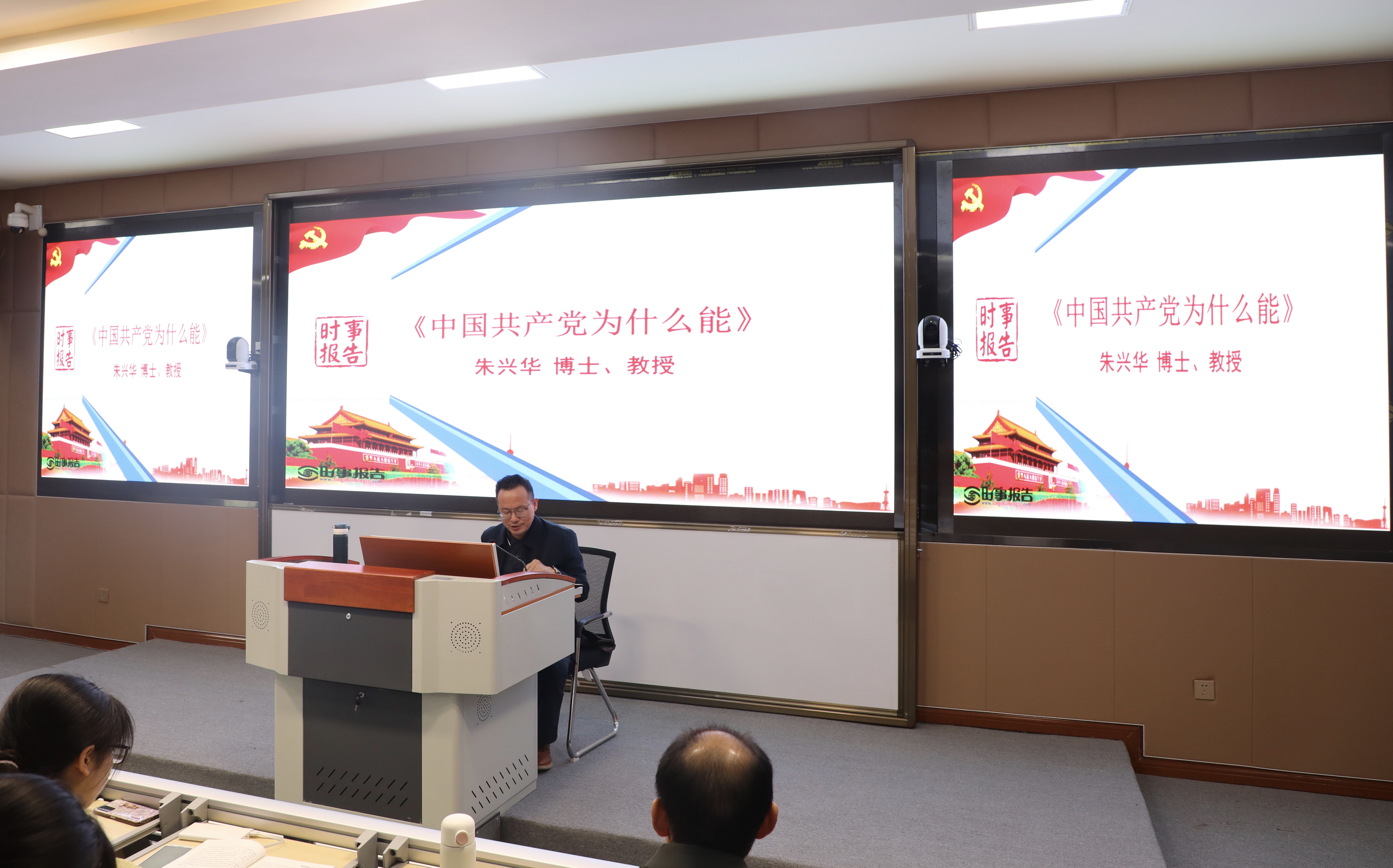 为深入学习贯彻习近平总书记关于党史的重要论述和党中央决策部署,4月26日晚,公司党委常委、副董事长朱兴华教授在博文楼313教室为外国语公司部分学子讲授题为“中国共产党为什么能”的《形势与政策》课。外国语公司党政领导班子及部分教师参加。